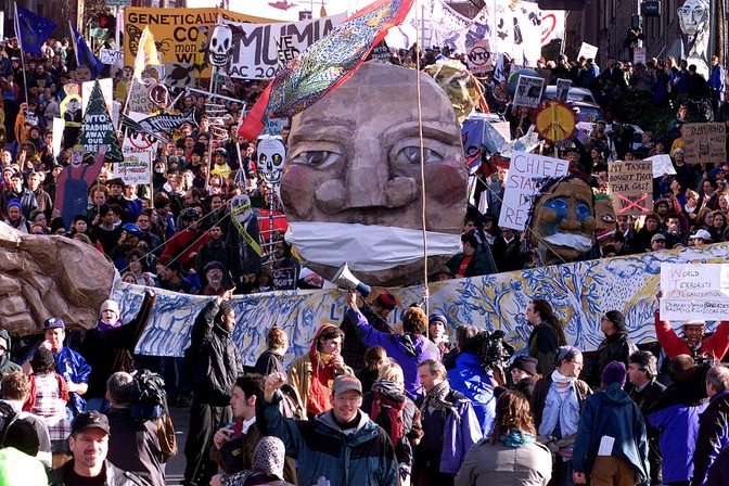 Demonstrators in Seattle protest the World Trade Organization summit in December 1999. (Hector Mata / AFP / Getty)