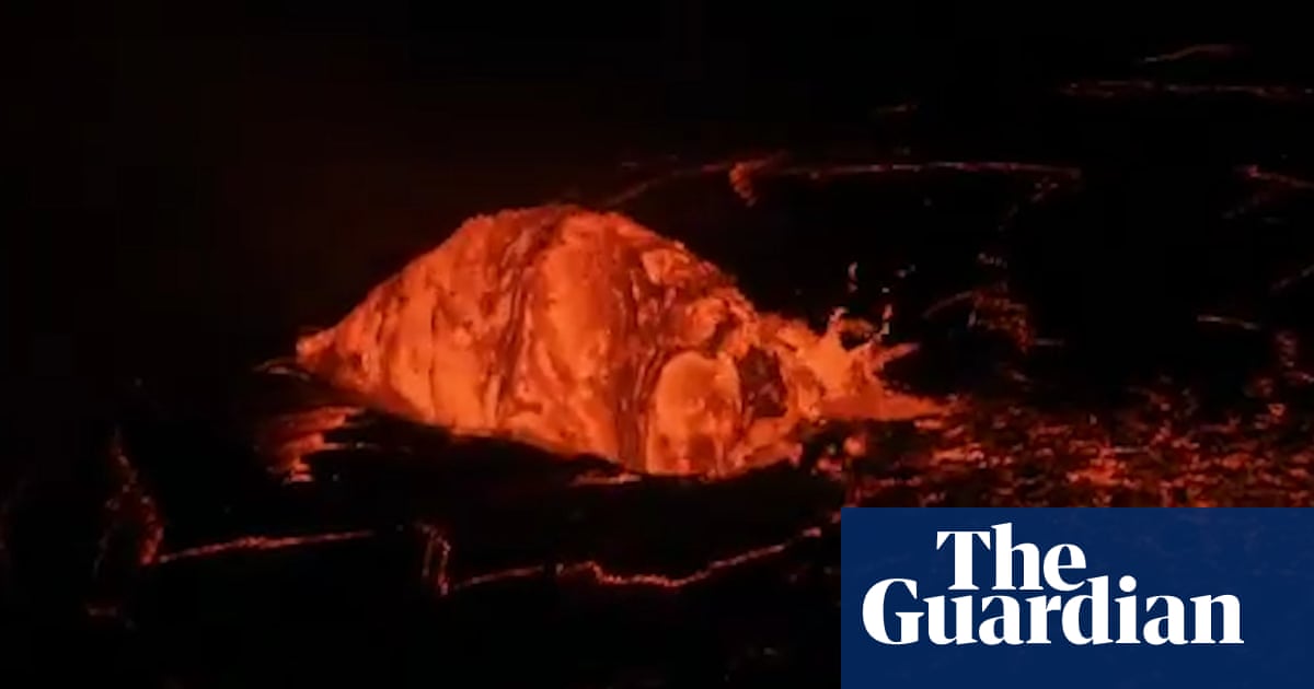 A lava dome fountain formed inside a lava lake inlet after Hawaii's famous Kilauea volcano erupted in December 2020. Footage from inside the Halema’uma’u crater was filmed by the US Geological Survey