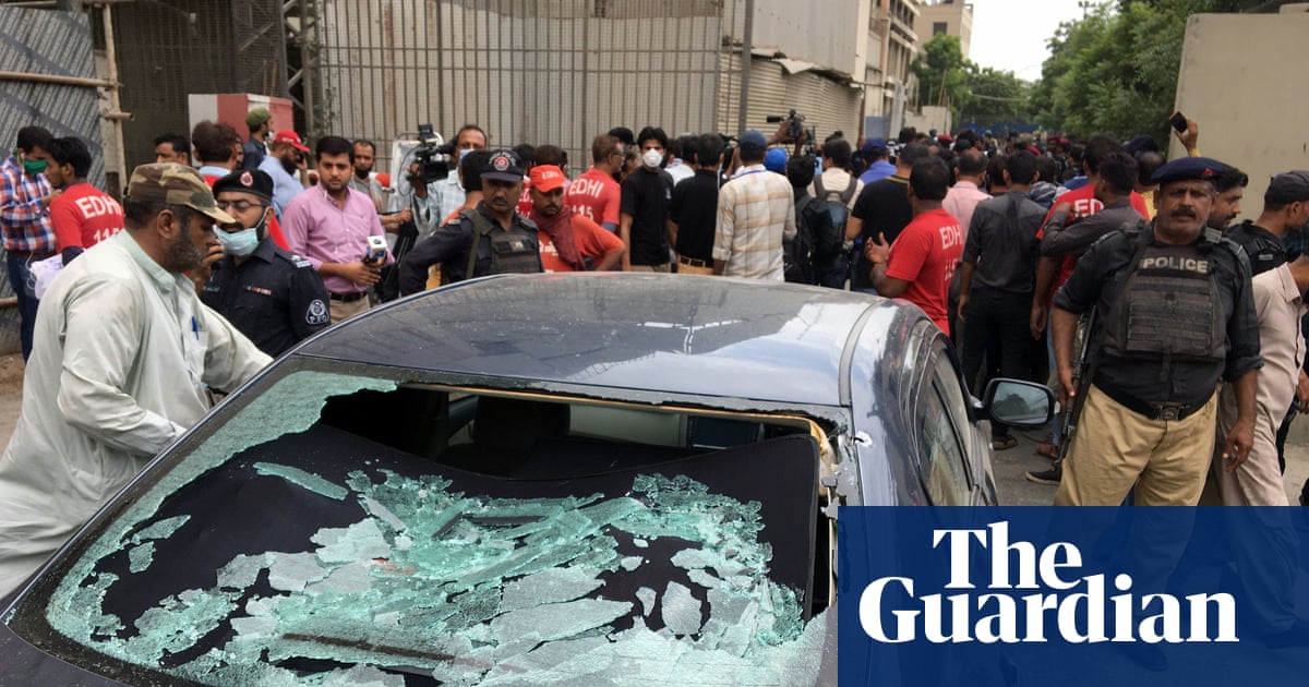 Two security guards and police officer killed in Karachi attack, and four attackers killed
