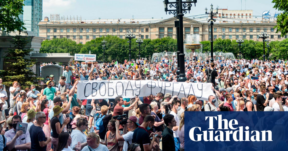 Tens of thousands of people in the Russian city of Khabarovsk have turned out for a protest over the arrest of the region’s governor on charges of involvement in multiple murders.