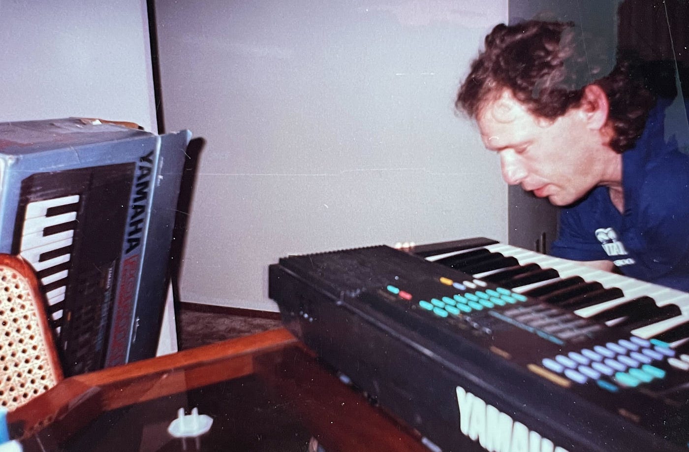 When I’d stay with him in the summer he’d play for hours on a Yamaha DX-7 only owning two sound cartridges that he’d rotate after going through all the patches. It sat on a tall Peavey amp that acted as a stand, flanked by stacks of music books. He’d play and sing and change the lyrics to make me laugh while I played on my Gameboy. He’d ask me if I knew the song that he was playing, and I’d say no, because I was nine, and he’d tell me who it was and who wrote it and what else they wrote and who they used to hang out with. He loved reggae too, playing tapes of Steel Pulse and Israel Vibration while taking me to comped buffets to eat like a nine-year-old king.